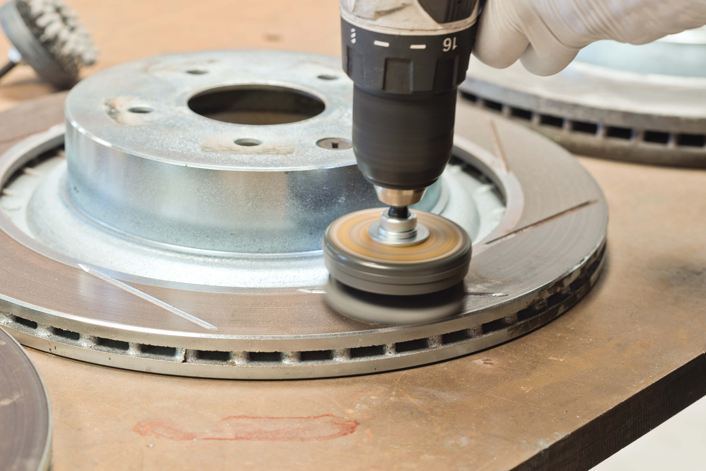 Impart the ideal surface finish on new and turned rotors to insure instant brake pad seating and eliminate noise. Utilizing proprietary FLEX-HONE® technology to create a non-directional or basket weave finish while removing torn and folded material produced by turning or truing.