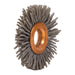 BRM's Abrasive Nylon Copper Center Wheel Brush features a 1.250" brush diameter with a .250" trim length, .312" face width and a .375" arbor hole. The CY114180AO contains 180 grit Aluminum Oxide abrasive nylon filament. These wheels are Ideal for cleaning, polishing and deburring internal surfaces or recessed areas such as small openings, slots, machined grooves and more. Effective and Safe as abrasive nylon brushes are non oxidizing, eliminating the reaction with metal as well as non sparking with no bristle fly out. Sold in a standard pack of 12. Proudly made in the USA.