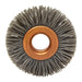 BRM's Abrasive Nylon Copper Center Wheel Brush features a 1.250" brush diameter with a .250" trim length, .312" face width and a .375" arbor hole. The CY114320AO contains 320 grit Aluminum Oxide abrasive nylon filament. These wheels are Ideal for cleaning, polishing and deburring internal surfaces or recessed areas such as small openings, slots, machined grooves and more. Effective and Safe as abrasive nylon brushes are non oxidizing, eliminating the reaction with metal as well as non sparking with no bristle fly out. Sold in a standard pack of 12. Proudly made in the USA.