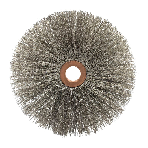 BRM's Crimped Wire Copper Center Wheel Brush features a 4.000" brush diameter with a .625" trim length, .625" face width and a .625" arbor hole. Th...