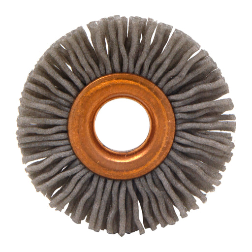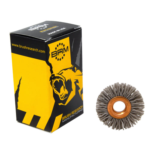 BRM's Abrasive Nylon Copper Center Wheel Brush features a 1.000" brush diameter with a .125" trim length, .250" face width and a .375" arbor hole. ...