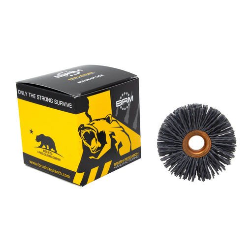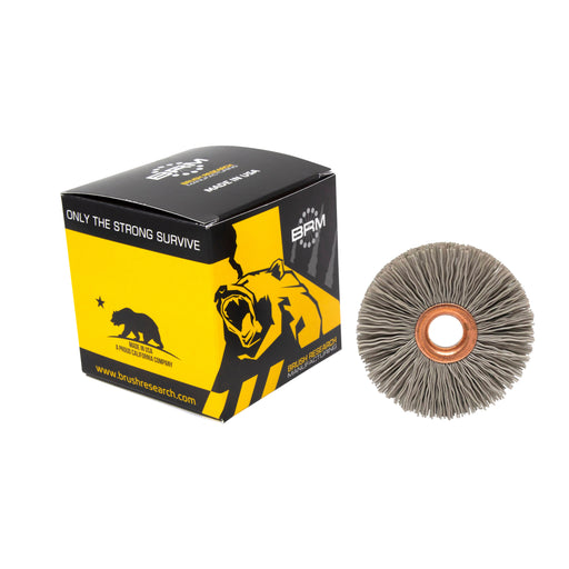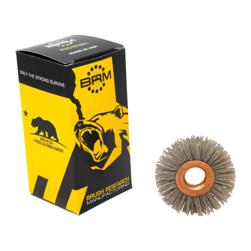 BRM's Abrasive Nylon Copper Center Wheel Brush features a 2.500" brush diameter with a .500" trim length, .500" face width and a .500" arbor hole. ...