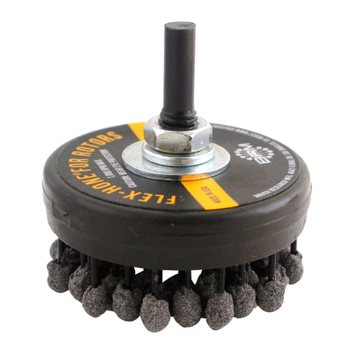 Impart the ideal surface finish on new and turned rotors to insure instant brake pad seating and eliminate noise. Utilizing proprietary FLEX-HONE® technology to create a non-directional or basket weave finish while removing torn and folded material produced by turning or truing.