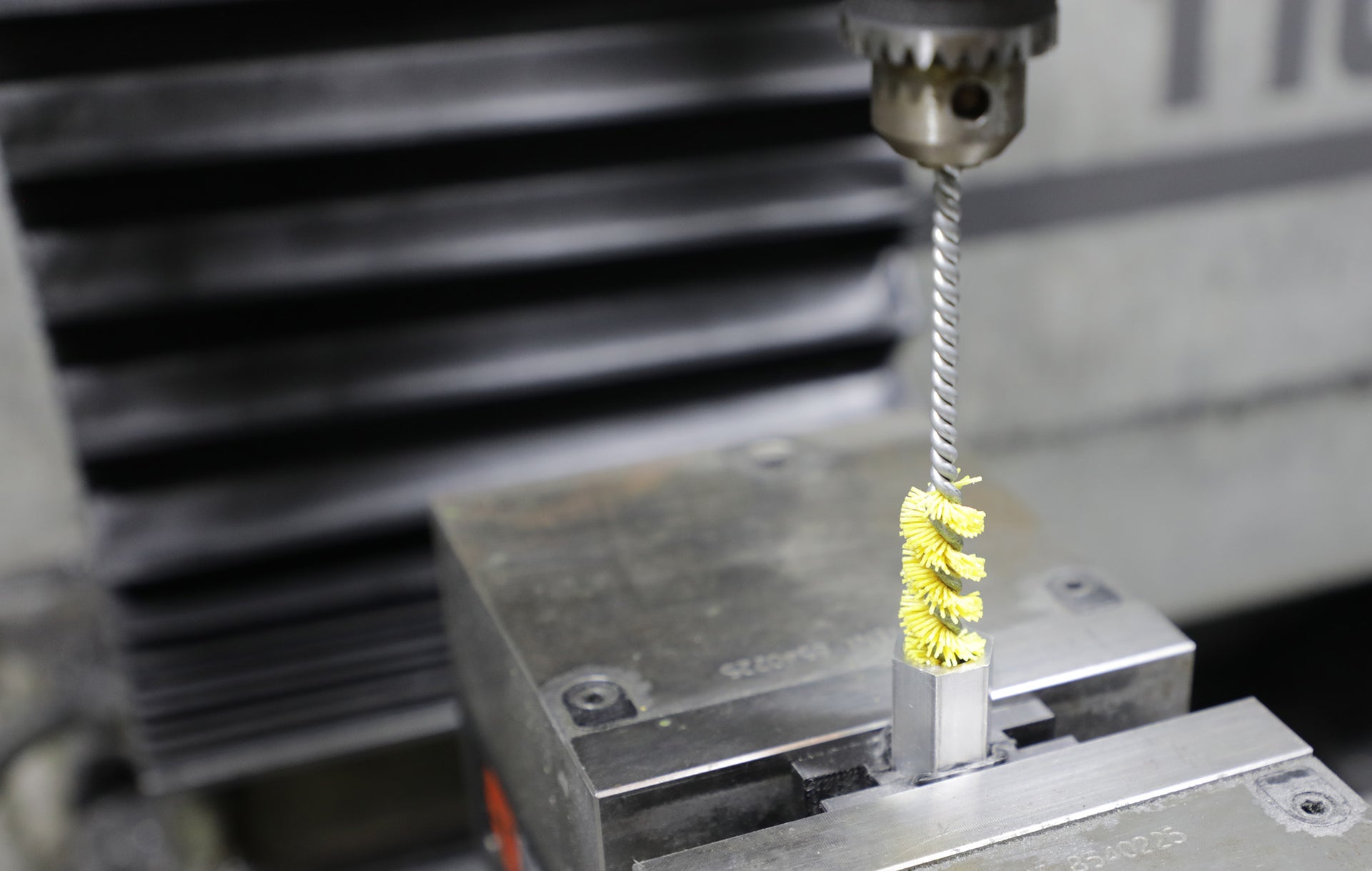 FLEX-HONE® tools are ideal for coarser internal thread deburring, blind holes, and intersecting passages, using it’s self-aligning abrasive action that removes burrs without damaging thread geometry. Additionally, abrasive nylon spiral brushes are specifically designed for cleaning and deburring threads and feature flexible, grit-impregnated filaments that reach deep into thread roots and crests for thorough, non-destructive cleaning.